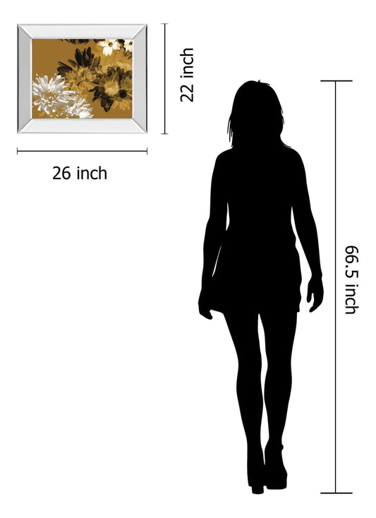 Golden Bloom I By Mirror Framed Print Wall Art - Dark Brown
