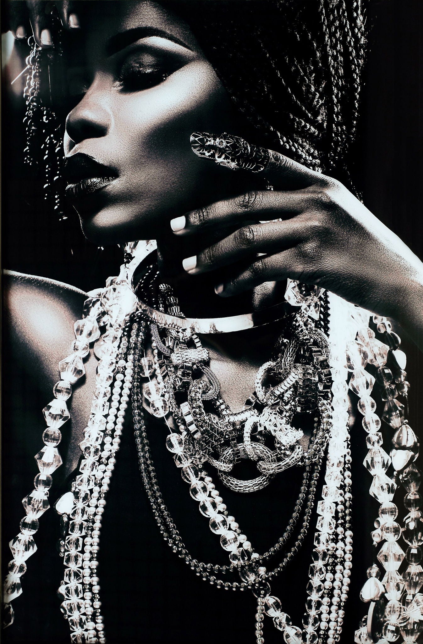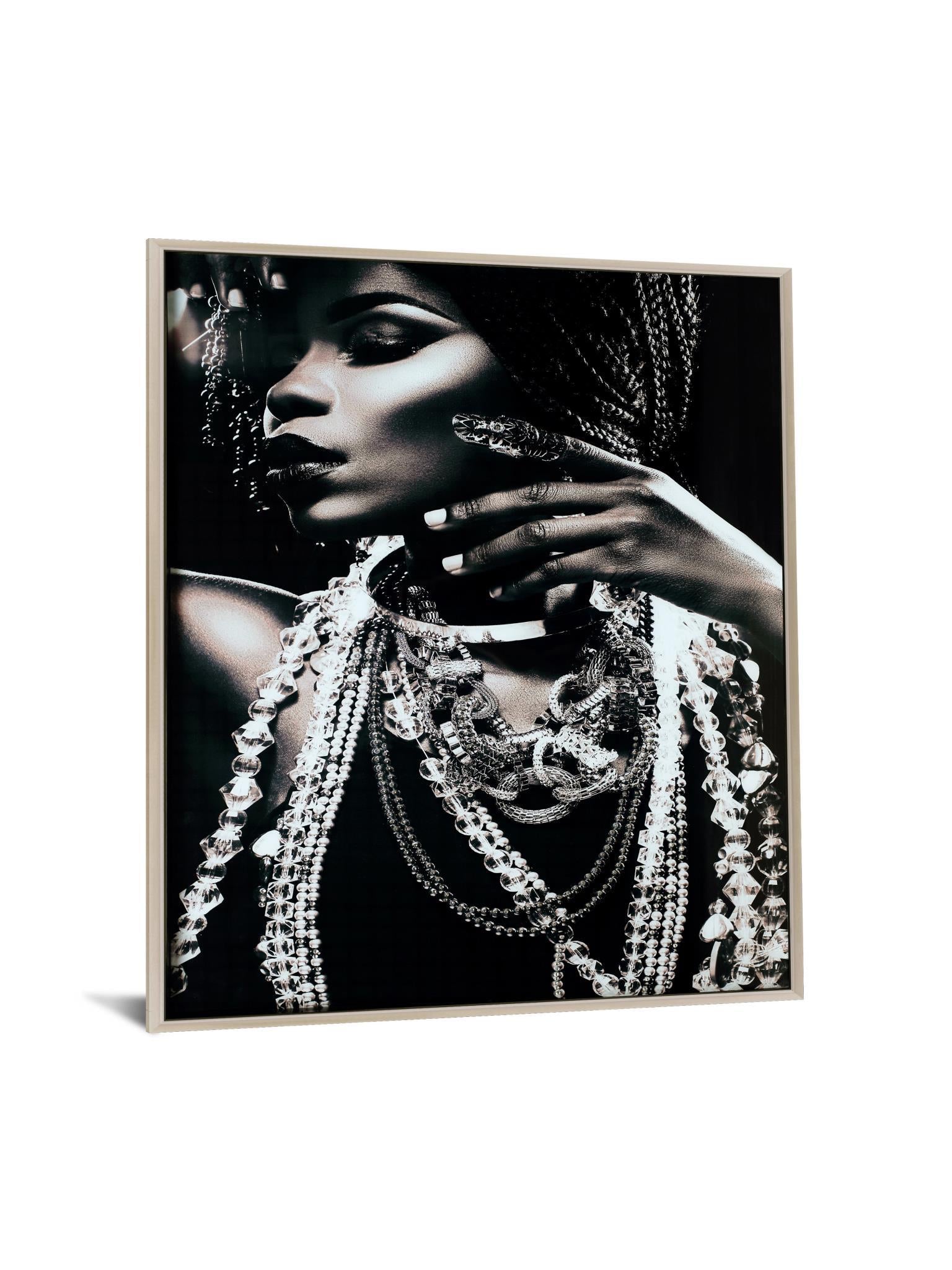 Enjoy the impressive collection of unique trinkets and jewlry that this woman has collected. Tempered or toughened glass is a type of safety glass processed by controlled thermal or chemical treatments to increase its strength compared with normal glass. The high-resolution artwork behind hit, coupled with elements of foil will mezmerize your guests. It is incredibly vibrant and alone will add a dramatic affect to your room. We overbox these large 40x60 pieces of art so it will arrive saftely to your home or office. We also have added special hanging hardware, exclusive to Classy Art, to the back to make haning this pice quick and easy.