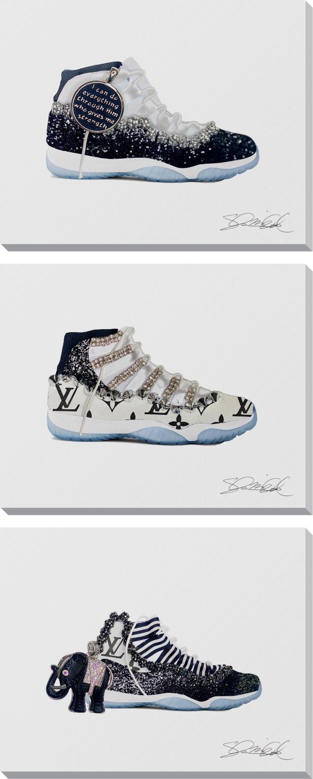 Print On Canvas With Crystal And Giltter Decor (Set of 3)