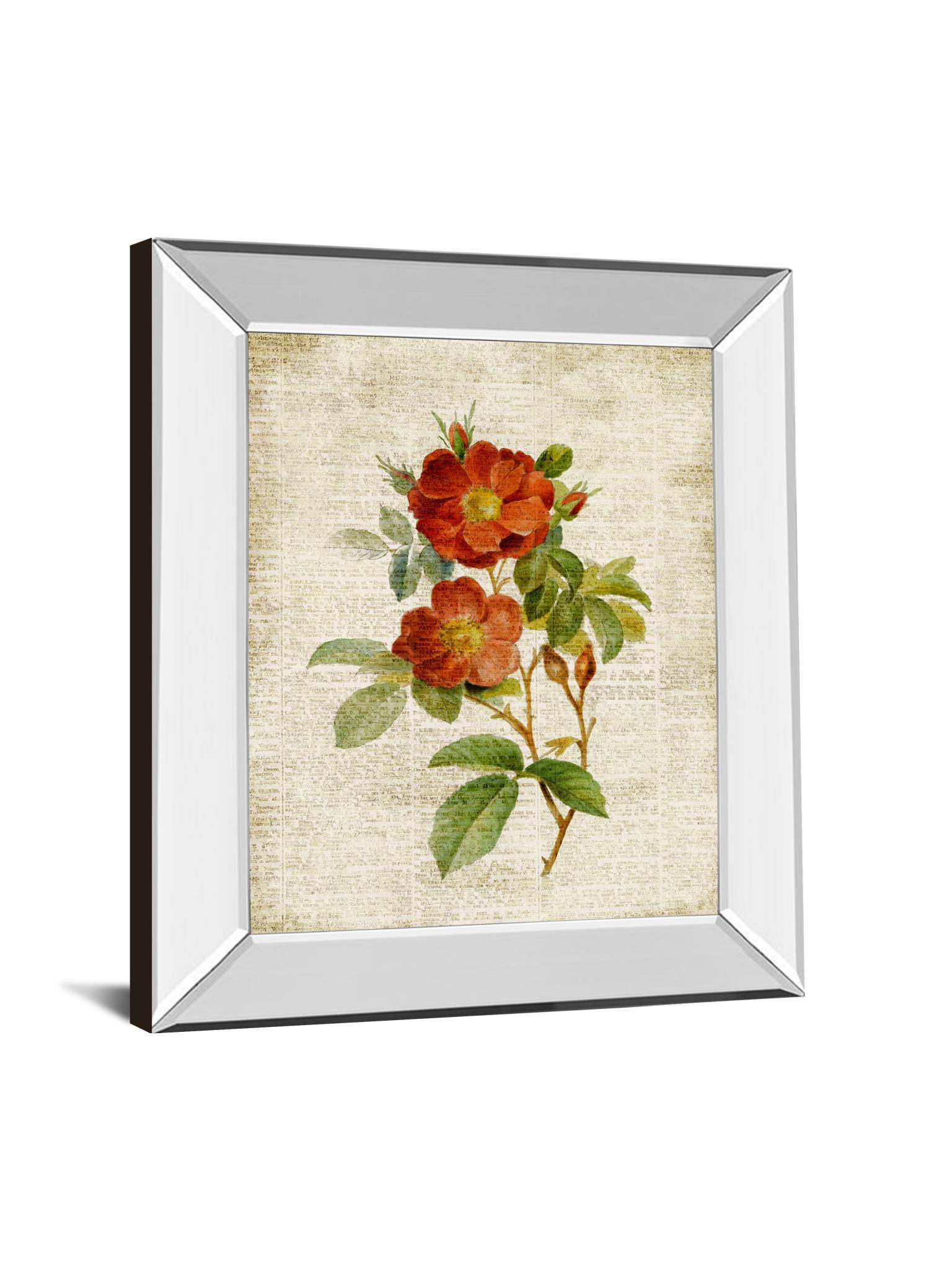 Roses On Newsprint Il By Lanie Loreth - Mirror Framed Print Wall Art - Beige